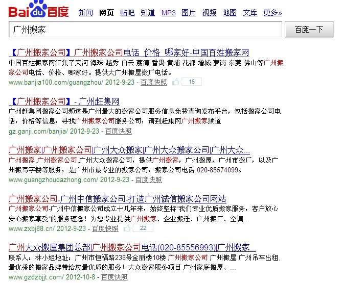 大家看到红色区域了没,我们百度搜索广州搬家,出现在第一和第二名的具有一个共性,就是都加的有一个【】这样的强调符号,这个是这些网站区别于其它网站的地方,因而他们获得了用户更多的注意,也就获得了更多的用户来点击。这招已经是58同城惯用的方法了,它所取得的成功是非常显而易见的。不信大家可以百度去搜索一下一些地方搬家或者地区二手车的信息,出来的总是58同城的这种强调的符号的网站。但现在已经被赶集、百姓网纷纷采用,已经不具差异性的效果了。 标题设置的好坏直接影响到我们网站的点击率,如果网站连基本的点击率都没有,何来的转化率呢?所以做好网站的标题,是我们SEO的重中之重。 本文由程力传媒led广告车厂原创提供,转载请尊重原创信息。 (责任编辑:admin) |