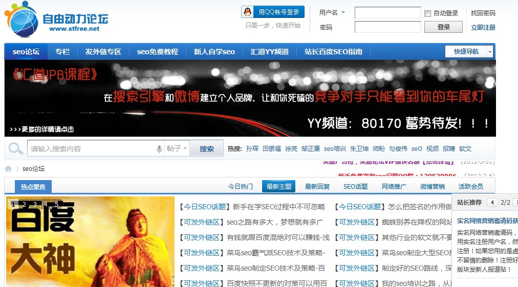 在Seo、营销业界大名鼎鼎的实名营销论坛一直受到站长们的关注,疯猫哥苏良才今天就自由动力论坛做一个分析,不足之处,欢迎指出。 收录快,权重不够高