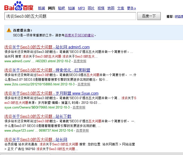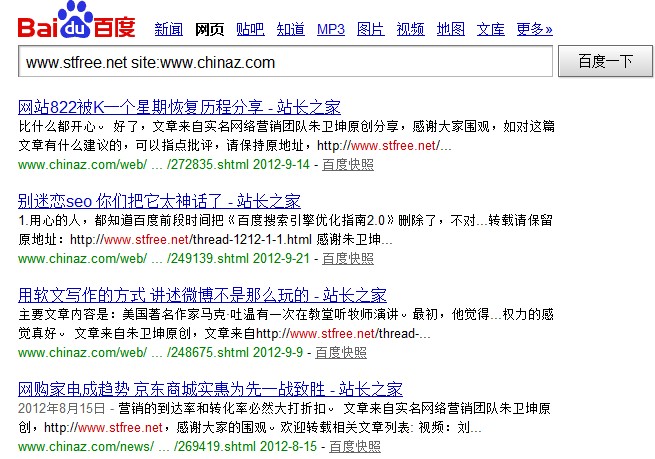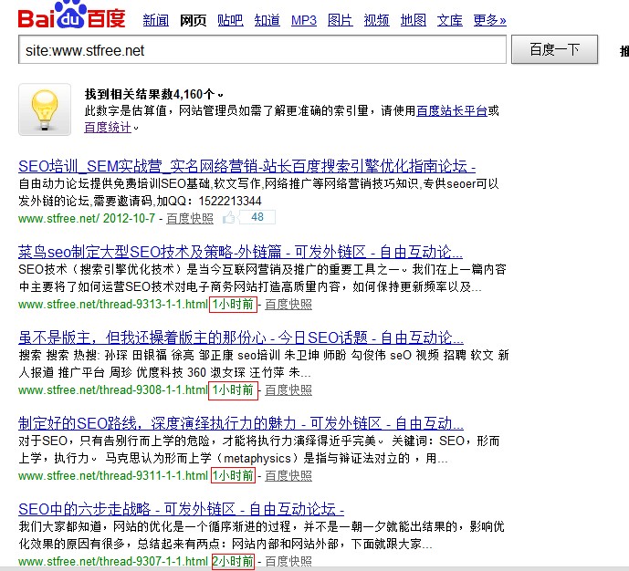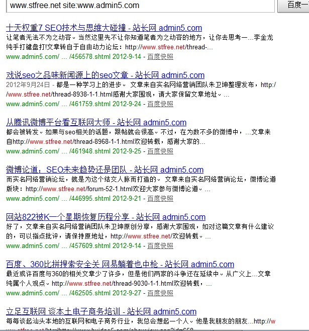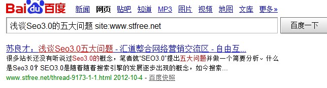 苏良才在个人博客发表后同步到了实名营销论坛,虽然有快速收录,不过搜索题目缺没有得到排名。众所周知,排名是根据百度给予网站的权重而定的。实名营销论坛先收录,在有利的条件下,还是没有排名。 小结:收录快用处不大,权重高才是王道。 外链分析