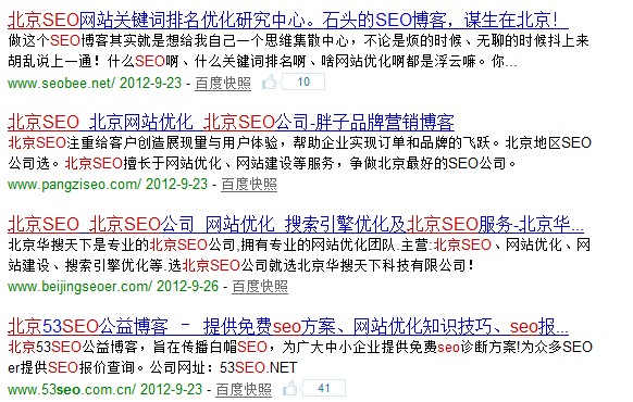 从图中可以看出,并不是快照越新,排名越好的。搜索北京SEO这个词,排在前面的快照都不是最新的,反而在第二页第三页的那些快照更新。同样的,百度快照跟Alexa综合排名也不会有什么关系。 四、有些人说网站更新频繁,天天有更新,快照就会跟着更新越快。这个结论也可以不用想就否认。搜狐,腾讯,人人网这些网站每天都有更新(看下图),并且更新的都还不少,为什么他们的快照就不是最新的呢?反而一些个人小站长的网站的快照确实最新的呢?