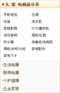 当前分类名称字体大一号,加粗变色,并在其前面加一着重符号,告诉蜘蛛,这个关键字很重要。 同时其排版设计很明确的告诉用户自己正在浏览的网页是属于哪个分类的,其下整齐的排列出此分类下的小分类导航,方便用户进入自己所想购买的产品准确列表页。同时给蜘蛛铺下一张网让其爬。 下面几个同级分类并没有展开,而是收缩起来的,这样做有几个好处 1:节约页面空间 用户进入“大家电”这个分类来,其主要目的肯定是想要浏览“大家电”的产品,如果全部展开的话,对用户来说并无太大意义,并且占用页面空间。 2:集中用户注意力 用户既然进入了“大家电”这个页面,那么无论此用户是通过什么渠道来的,来了是想购买产品?还是分析竞争对手?也许仅仅是无聊来逛一下?又或者是其他什么目的? 竞争对手肯定是不会买东西的,咱直接过滤了,不用理他。其他用户,进来的渠道以及其目的肯定是多种多样的,但是有一个共同点是可以肯定的:用户想了解“大家电”。既然用户想了解,那咱们肯定不能让其失望,必定把此分类下的小分类详细的展示给用户,让用户能够更精确更深入的了解,当用户了解多了后,订单也就自然而然的来了。 3:尽可能的留住用户 前面说了,用户进来的渠道必定是多种多样的,并且其目的也是不同的,那么就肯定会有一些用户是误点进来的,还有一些用户了解了之后发现自己所需要的产品并不是“大家电”,想卖“大家电”的产品给他那几乎是不可能了,但咱也不能就这样放弃啊,所以就得让其看一看其他相关产品,以期能留住用户,并且最终成交订单。 好了,今天就分析到此,明天继续,由于本人水平有限,望高手在批评的时候不要喷口水,谢谢! 文章由钢度网 原创分享,欢迎点评指导,转载请保留原地址! (责任编辑:admin) |