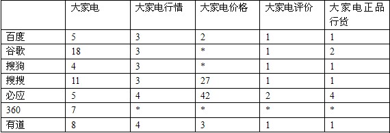 从上表中咱们可以看出,除了“大家电”以外,其他长尾词的排名都是非常好的,当然并不是说“大家电”这词排名就差了,百度“大家电”排名第一的是京东另一个页面,也是属于京东的,当然咱们这里分析的是单独页面而不是整站,所以这就不多说了。 标题咱可以看出其是完全按照《百度搜索引擎优化指南》来的,至于其为何没有把网站名称加在后面,这里咱们没资格去评判人家是对是错,毕竟人家所有相关词都是做到首页了的。 Keywords:大家电,家用电器报价、促销、新闻、评论、导购、图片 “大家电”是这个页面的主要关键词,肯定是要在这里单独放一下的,虽说百度官方说了百度蜘蛛是直接忽略keywords的,但其他搜索引擎却并没这么说过。 后面关键字和标题完全不同,但却是description里的,由此可以推测其目的不光是想利用title做排名,description也同样不放过。 咱们看下其百度排名: