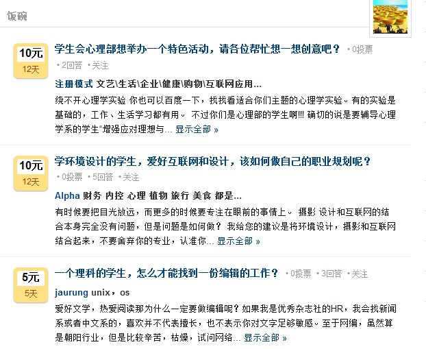 互联网是不断进步的,当然互联网的模式也是不断进步。在此,疯猫哥提出一个“互联网模式”。什么是互联网模式呢?举一个例子,百度搜索的模式就是提供各种资讯的地址给用户。那么,疯猫哥就互联网模式写一系列文章,希望大家多多支持。 今天,我们提出一个互联网模式进步的新星:轻威客。 威客其实大家都很熟悉,但是轻威客大家可能比较少闻了。下面我们来谈谈轻威客和如何将这种模式植入我们网站中。 轻威客应该说是威客和问答系统的高度结合。国内C2C轻威客的网站比较出名的就是略晓网了。轻威客实质上就是威客的进步。 猪八戒是著名的威客网,不过很多东西专业性太高,扣费高,不太公正。那么在轻威客上又有什么进步呢? 轻威客特点一:专业普遍化 以略晓网为例,问题不会只是Logo设计、网站编程之类的相对专业的问题。问题都相对平民化,类似于百度知道等网站的问题。 当然,我们要知道一点专业化≠质量。越平民的问题能解答的人就越多,那么质量也就越高。一些小白如果去回答专业化的问题,而回答的内容任主不认同,那才叫质量低。