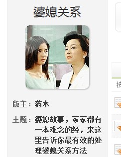 婚庆服务之中,我们最为关注的是婚庆所带给我们的价值,以及体会,所以这里的交易区肯定是让很多朋友,以及版主认证过的,交易,如果希望有一个最为优雅的服务的话,这里,将是你直接发挥自己的魅力的时候,找服务,来采购吧。 c)婚姻加油站:“七年之痒”,这是中国放在爱情之中的俗语,婚姻加油,我们都希望爱情可以幸福永久,加油版的婚姻可以带给你最为原始的感动,这里呢,你可以看到有一些朋友的一些婚姻的事情,有对爱情最为细节的考验,有对自己的感情述说之路,无论是什么,这里都会给你一种最为真实的爱情一面。 d)婆媳关系:婆媳关系也是爱情中不变的话题,如下图是这个版块的主题