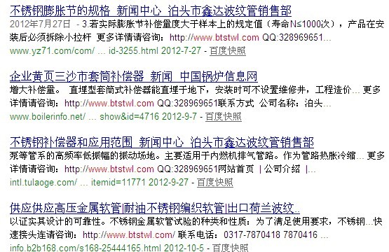 现代社会,不论是互联网还是现实社会,只要有利于冲突的地方就必然会存在竞争,既然是竞争,肯定就会有第一的产生。而第一又只有一个,于是乎每个人都暗下狠心一定要做上第一把交易,一场貌似乎舞林大会一般为了一个盟主之位而闹得遍体鳞伤(过度优化),其结果还是无法获得好的排名。与其对自己的网站进行大手笔的优化,比如我们先看看自己的竞争对手,思考一下别人为什么又能排在第一位,我们是否又该从竞争对手中学到优化其技能呢?孙子大师也曾说过“知己知彼,百战不殆”! 的确,竞争对手的网站之所以能够获得很好的排名,说明人家的优化手法得到搜索引擎的认可。既然这样,我们为何就不能借助他的优化手法运用到自己的网站优化来呢?答案是,绝对可以。因为笔者就是通过分析竞争对手的优化手法并借助竞争对手的优化手法运用的自己的网站优化当中,从而将自己的网站恢复过来!笔者以自己的一个企业站威尔佳金属波纹管想为例进行分析。这个站在9月份之前都是没有排名的,是属于典型的被严重K站的那种,网站被K的因素很多,包过垃圾内容太多、友情链接紊乱、首页关键词密度不合理等因素。所以,面对这样存在一系列问题的企业站,要想恢复过来也是任重道远的!