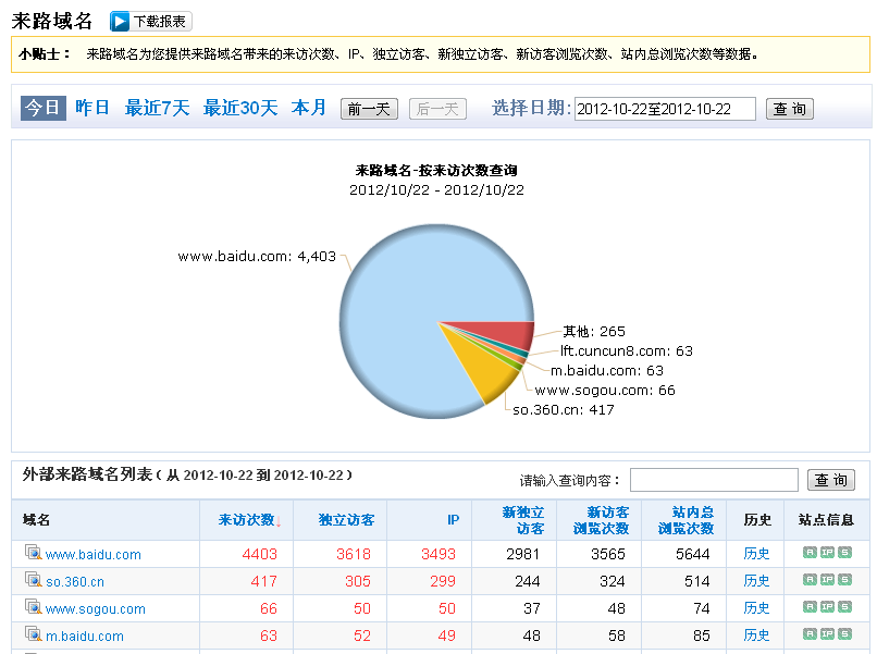 访客的来源信息与站点的发展息息相关,我们在运营站点的时候第一件事情就应该是去解读访客是从哪里来的,通过后台的流量统计工具我们可以得到访客要么来自于你所发布的站点外链,要么来自于相关关键词搜索,而我们首先要解读的就是这两种不同的流量来源的比值,了解清楚自己下一步的发展方向。例如假如你做的是一个电子商务站点,你也在很多站点发布了外链,而站点每天的流量超过了1000ip,这个时候你就有必要去解读对比这些流量是从哪里来的,目的就是为了达到以下两个目标。 1、站点缺什么补什么,假如你的外链流量引入比例偏低,那么就有必要加强外链的扩展程度,而在扩展的时候我们要注意一个关键的问题,那就是发布外链的相关性,这样才可能更好的吸引流量。 2、站点什么优势就接着继续,如果你的关键词搜索流量引入高,那么就要保持关键词搜索的流量,我们在解读访客流量来源的时候就是要根据站点的实质情况来适当的调整自己的具体策略,确保站点的不断发展。 二、解读访客点击率,调整站点页面