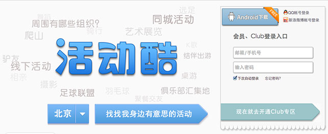 同城活动与线下活动正在变得热起来,Gauin(独立博客)是某活动网站的产品经理,在超过4个月的工作经历中,他获得并整理了关于活动类产品/网站的心得与分析,对于关注该领域的读者很有价值。 一、行业环境 活动是由共同目的联合起来并完成一定社会职能的动作的总和。当线下生活中活动进行火热的时候,互联网时代的活动网站却没有独领风骚。至少,没有看到那个活动网站独立存在并火起来了。豆瓣同城、微活动,都是基于母体延伸看来的产品形态。 人为什么需要活动?因为人是社会性动物,不能没有生活中的群体聚集行为。 也许,独孤终老也是一种生活方式。但,人终究是属于社会性的,人需要活动。 豆瓣、微博均不是专门干活动网站起家的,那垂直的活动类网站是否能有所作为?带着疑问,一起开始活动类产品探索之路。 二、产品现状 目前国内最大的活动类网站日均独立IP---豆瓣同城10万、新浪微博微活动27万,依靠母体成长起来的活动网站;还有快速扩张中的58同城、赶集网,各自产品架构中包含了同城活动类产品,帮助母体产品延伸和维稳。 经过调查发现现有活动类产品大致可分为四类:社区类、社交类、场馆类、工具类。 由于活动社交类产品和活动社区类产品并没有非常明显的产品界限,此处将对活动社交类产品一并列入到活动社区类产品中。 2.1 社区类 豆瓣同城