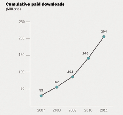 Shutterstock累计下载量由2007年的3300万增至2.04亿,其中2010年和2011年下载量分别为4410万和5860万;每下载平均营收分别为1.88美元和2.05美元。