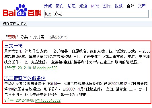 大家都知道百度的很多产品权重是很高的,像百度知道、百度贴吧、百度百科等。能在这三个中留下链接的难易程序是:百度百科>百度贴吧>百度知道,也就是说百度百科是一个门槛低而且很容易留下链接的好去处。可能会有些站长说百科太难做了,那么今天就让我告诉你,其实百科不难的,关键是要抓几个要点。 一、做百科的时候有几点要特别关注的: 1、错别字; 很多词条都存在很多错别字,有时候句子根据就不通顺。 2、标点符号; 标点符号也是,很多不规范,这里要考验大家的语文功底了。 3、不通顺语句; 这里主要是考验大家的语感,当然这些句子修改的时候一定要官方点,通俗易懂,尽量不要出现一些很语言化的词语。 4、内链。 内链就是在整个词条里面的句子中,如果你觉得有些词大家可能不会懂,那就加上内链,这个加内链方法很简单,这里不多讲了。 其实我也只是关注这几个,对于站长来讲,这些语文功底应该没问题吧,所以说最关键的是做完这些后,要在扩展阅读上添加我们的链接,如何添加呢?一定要和词条相关的新闻,问答,知识等文章。如果你没有这样的文章,百度一下,然后copy过来,然后你懂的。 二、那如何寻找这样的词条呢? 1、明确你的行业和关键词; 2、为你的行业和关键词细分化一些小词比如你做的是法律,那么像房产、婚姻、劳动、合同这些都属于我们要寻找的tag标签词; 3、利用百科的tag指令查找所有与tag标签词相关的词条,例如:tag:劳动。