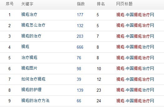 大家可以通过上面2张截图图,大致了解下笔者讲诉的这个网站一些基本情况,毋庸置疑的是这个网站是一个关于褥疮的医疗类网站,同时这个站也是刚过百度考察期,也算的上是一个新站,而且所做的相关关键词都进入了百度首页,对于一个新站来说,这个医疗网站做的是相当的成功,那么它成功在哪呢?下面笔者来讲解一二 网站的站内优化
