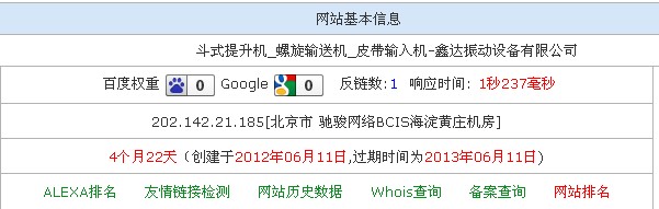 图二:站点基本信息 域名时间:4个月22天,没有备案信息,最近百度超链算法升级了,升级后的算法让很多SEO人纠结,很多关键词的排名混乱,比方说,ZAC的博客从第一页消失了,出现了一些莫名其妙的网站,这样的情况其实很正常了,笔者搜索“斗式提升机”和“螺旋输送机”这两个关键词查看竞争对手,能够发现这两个词第一页的网站排名与以往不同, 这两个关键词的排名笔者记得很清楚,第一页本来这个位置一直都是企业站,可以肯定的是原来是没有优酷视频内页和豆丁网内页的,根据一般经验来看,这两个内页的排名没道理会出现在这,内页的权重很低,但排名却很多,而第二页、第三页有很多超过这两个内页权重的企业站,结合以上的种种现象,再分析下自己这个被K了首页的网站,排除了一些不可能的原因后,只能等待百度更新了,最近笔者有两点感悟: 感悟一:以后做优化需要更低调 笔者查看了一下第一页竞争对手的网站,发现其domain数据并不多,有不少是几百的,最多也就一千多,domain不是外链,但可以看出个大概,再认真看下这些站的内容,说句实话,基本上都是复制、粘贴的,而且有些网站已经许久没更新内容了,为什么这些网站能有好的排名,笔者的这个企业站收录一直不给力,文章质量还行,多数都是自己编写的,与竞争对手相比,在网站内容方面不比别人差。但收录为什么就是不给力呢?个人以为新站不宜去做很多站内锚文本,外链也得少做。优化需要更低调点,百度现在非常敏感。大家可以随机查看下百度第一页的网站,domain一下,不管是外链数量还是质量,其实很多都不如自己的网站,甚至是相差很远,同样是几个月的新站,为什么别人可以优化到第一页呢?衡量外链质量的标准有所改变。 感悟二:用户体验其实很笼统,我们能做到的不多 谈到用户体验,其实很笼统,尤其是企业站优化,目前也只限于几个关键词的优化,做整站优化的毕竟不多,用户体验这东西不是设计一个好看的网站就行了,更不是我们SEO人员掌控的,我们只是参与了网站设计和内容建设两个方面,细分的话,内容建设应该有网站编辑来完成,所以SEO人员真正参与不了多少网站用户体验方面的知识,网站用户体验包括产品设计、网站设计、内容建设等。作为一个企业网站,我们只要在内容上下功夫就行了,至于页面设计我们真的无法修改太多东西。今天就聊这么多,还得继续做好网站的内容,剩下的就是漫长的等待了。 本文由 灯具品牌() 原创分享 转载保留链接 谢谢! (责任编辑:admin) |