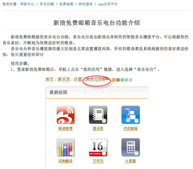 图11:京东商城首页和团购 的顶部导航(截图时间:2012-09-11) 无序还表现在项目规划不完善、责任不够明确、工作缺乏严谨流程,这些经常导致某些必要而不常用的页面内容缺乏及时的更新和维护,或是因为更新内容超出最初设计时的承载力而造成结构混乱。一个经常被忽略的页面就是帮助资讯页面,比如新浪免费邮箱改版后帮助中心并未做细节上相应的更改,虽然整体结构没有大变化,但个别应用还是会出现无法找到的情况,比如App应用,帮助中心中的截图是旧版的,现在已经无法根据帮助信息找到应用的入口了(图12)。
