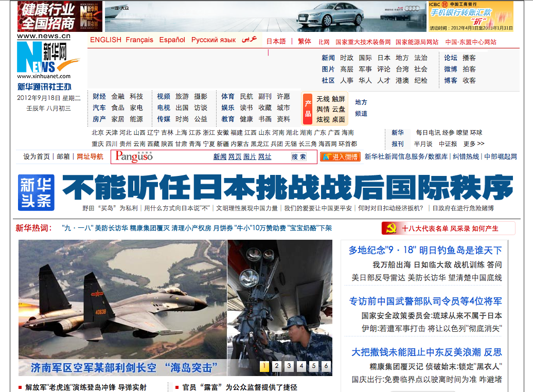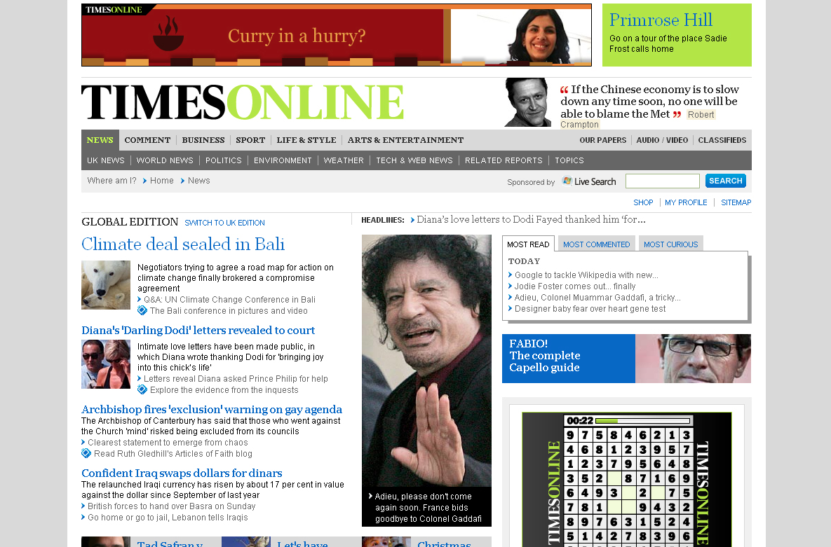 图9:英国《泰晤士报》网站首页(截图时间2007-12-15,2012-09-18),现在的版本倒是没有五年前的清爽了 在色彩上,国内的两个网站相对偏爱大蓝、大红的颜色,对比度也更加明显,这一点正与刚刚讨论过的喜欢热闹的国民性密切相关(图10)。