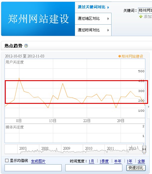 在很多优化网站上面看过很多文章,都是大致的理论知识,而没有实例来让大家更直观形象的学习,所以,笔者通过自己的优化经验来分享一下我个人对关键词的分析过程。我们来拿“郑州网站建设”这个词进行分析,要对郑州网站建设这个关键词的难度进行分析,要从以下几点着手。 一、关键词的搜索量