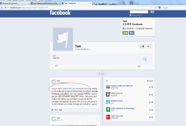 社交网站SEO之Facebook 一 如何用Facebook等社交网站做SEO优化 Facebook是全球最大的社交网站,目前世界排名第一位.如何用类似Facebook这种高权重的社交网站做SEO优化呢? 首先看看下面的效果截图: