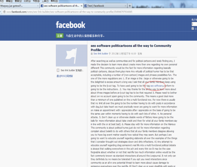 Facebook专页日志是唯一支持带锚文本链接的功能,是价值非常高的外链资源