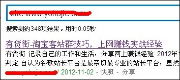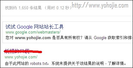 去年10月份的时候做了一个女装方面的网站,因为收入方面不太如意,于是决定废弃用来做个博客写日记,顺便做个试验,看看各主流搜索引擎的表现。本文主要目的是想看一下一直存在争议的robots协议在各大搜索引擎中的份量,权当娱乐。具体操作过程是这样的,改版当天开始在robots.txt添加如下语句: User-agent: * Disallow: / 这次改版并未更换程序,Asp语言的zblog程序,只是更换了一套模板,首页、分类、文章页面的布局有较大的差异,新建了几个新分类,然后删除服务器上的静态文章目录。之后是保持每天一篇纯原创的频率更新内容,历经15天,通过site指令查询得到各搜索引擎的表现,如下: 1、Google搜索引擎