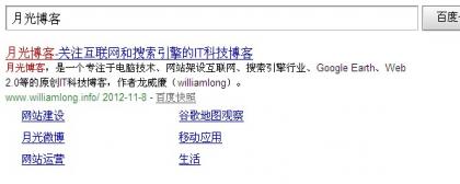 11月上旬,借鉴了谷歌sitelimk的百度sitelink正式推出,今后在百度搜索一些网络品牌关键词(包括行业品牌、区域性品牌)时,会出现SiteLink(全站链接)展示效果,即除了正常显示该品牌网站首页标题和描述内容外;同时百度根据自己所掌握的庞大搜索用户搜索数据,在品牌网站首页展示条目下,给出这个网络品牌最受网友推崇的几个品牌特色服务(或内容)链接,它是百度“即搜即用”策略的一个重要补充完善。