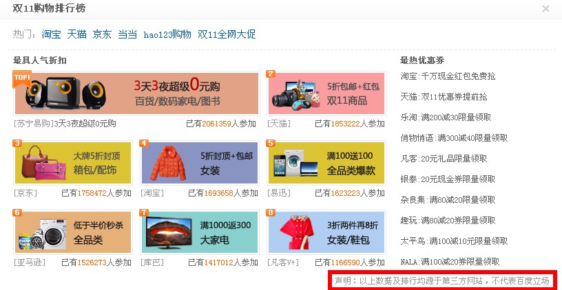 加载数据完毕后,可以看到调用第三方的关于双11购物排行榜,而且这些数据是实时更新的。