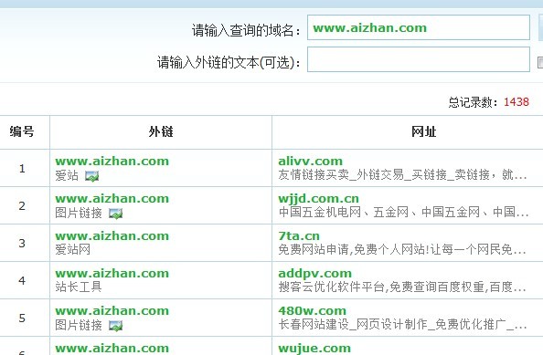 如果说外链能决定排名,显然是错误的,站长帮手网的外链是三个之中最差的,排名却能超过爱站稳居第二。考察下他们的锚文本就可以很清楚的看到。