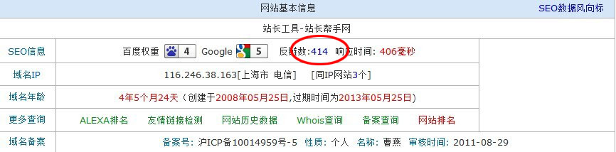 爱站的锚文本杂乱不堪,“爱站”“站长”“爱站网”等等。 很容易看出,在同一权重等级下,锚文本对排名的影响十分重要。因此,大家在进行外链建设的时候,对锚文本的设计应该与关键词排名紧密联系,人多力量大,少量的外链加上合适的锚文本关键词,就能达到良好的seo效果。 3、网站title权重 网站title是全站权重最集中的地方,字数越多,权重越分散,可以看出三者的分别:chinaz和站长帮手网分别用“站长工具-站长之家”“站长工具-站长帮手网”来做titile,非常明确、专一的利用了网站title的作用,相比之下,爱站的标题最长“站长工具-站长查询-百度排名-百度权重查询-SEO工具-爱站网”,导致关键词的得到的权重分散,从而使排名降低。 总结:对于站长工具类网站来说,PV应该不是什么问题,服务器的稳定是前提,只要进到网站的人,应该都会用上一阵子才离开。那么,对于工具类网站的seo,内容上就应该注重网站源码精简与优化,外链上就应该注重锚文本与友链的建设。此外,三个网站的排名,并不代表网站间质量的优劣,草根站长网虽然排名靠前,网站里大面积的广告甚是烦恼,每次进去都会滚动鼠标滚轮才能看到内容。但是chinaz能够做到百度为其列出子栏目,也不简单,显然是做到了整站优化一体的境界。作为爱站,要想超越,做好自身站内优化和内容才是重点。再说,工具类网站能够让大家加入收藏夹才是最终目标。 本文出自毕业论文网,转载请注明。 相关文章推荐 A5软文外链发布:?ID=63 (责任编辑:admin) |
