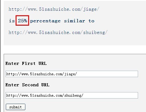 诸如此种购物指南、配送方式等一系列的内容,存在于京东的每一个页面,这个都属于相似度。相似度还包括网站的全站导航、底部的导航文字等等,其实我们可以借助一些工具来检测我们网站的相似度。为大家推荐一个比较好的测试网站相似度的网站: ,具体案例如下: