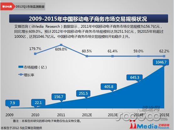 由中国电子商务研究中心提供的艾媒数据显示,2011年国内移动电商交易规模156.7亿,2012年移动电商规模将达251.5亿,而到了2015年这一数据将超过1000亿,达到1046.7亿元。 明年的移动电商会爆发到什么程度不可预知,不过应该有一位甚至几位大佬1/4的交易额来自移动端口,得出这个数据是因为,2012年易趣在澳大利亚和英国由移动端口带来的交易额已经占到了1/4。1/4可不是个小数据啊,如此大的份额说明了什么?智能手机的垄断说明了什么?都说明了一个趋势:未来的市场和份额在移动。 从流量和移动电商的数据我们可以预估2013年电子商务发展,希望明年有更多的惊喜带给我们。 文章原创:网上分销系统转载请注明,谢谢! (责任编辑:admin) |
