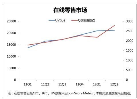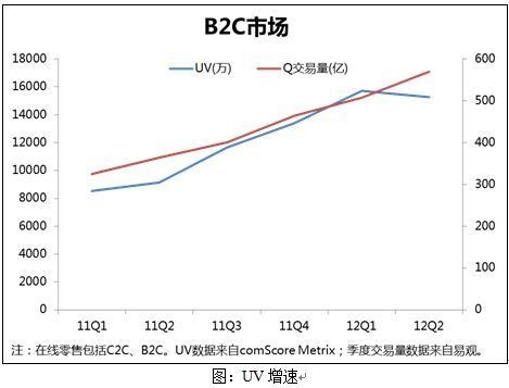 我们曾经浅谈电子商务今后的发展趋势,转眼又到了年底岁末,是时候展望明年的趋势了。笔者于电商行业工作,长期观察业界数据,所以今天从几个简单的数据看2013年电子商务发展。 下面的个人见解仅供参考,欢迎大家讨论: 1、流量增速放缓 整体而言,明年的电商行业销售额度依然可观,将会持续增长,但是流量的增速将会放缓。 我们先看两个数据,再来继续讨论。