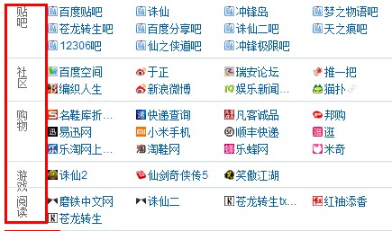 个性导航,如果让你感觉到最高的变化是什么呢?我相信那就是这些页面都是自己访问过的,最大的和导航站的不同,导航站的页面都是程序写好的,一般都是出售的广告位,让后提供给一些用户看,这些位置是要花钱的,而在百度新首页之中,我们可以看到各种提醒的消息,而这些页面相对于被动接受的页面来说也更加具有亲和力,比如说,我的一些个性导航,百度分类如下