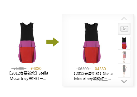 优众:hover出现商品几个角度的拍摄图+视频展示