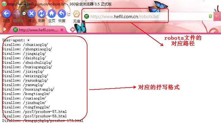 随着个人能力的提升,我开始由开始负责一些新项目操作,虽然这些项目所优化的关键词排名进度还算比较好,但在操作过程中我遇到了很多问题,这些问题的发现、解决让我认识到了seo工作中细节的重要性,可谓是细节决定成败。特别是通过项目的实战操作,让我时刻的认识到了robots文件在网站优化中的重要性。所以,seo童鞋们,特别是一些初涉seo领域的童鞋们,一定要熟练的掌握robots文件使用说明及其事项。 Robots文件,严格说来是robots.txt文件,它的真正内涵应该如何理解呢?其实robots.txt不是命令,而是一个协议。搜索引擎在抓取一个网站内网页的时候,会先抓取robots.txt文件,所以这个文件存在的意义就是告诉搜索引擎哪些页面可以被抓取,哪些页面不能被抓取。当搜索引擎抓取网站内的网页时,它会首先访问网站根目录下的robots文件,如果存在这个文件,搜索引擎会按照文件中定义的内容进行抓取,如果没有的话,搜索引擎就会抓取一切被允许它能够抓到的页面。在我的理解中,robots文件就像是告诉搜索引擎哪些页面该访问,哪些搜索引擎不该访问。 那么robots.txt文件的真正写法是什么呢?在操作荣利站点的时候,由于这个站点以前是老站点,而且是动态页面,现在是被调成了静态页面,所以里面会有很多原先的文件都消失了,所以搜索引擎就无法抓取到,会出现很多抓取错误,多达两千个,这就很有必要运用robots文件把这些已经找不到的页面定义掉,让搜索引擎不再抓取。这些内容就牵涉到robots.txt文件的书写问题。Robots文件中有两个基本原则,是最简单的robots文件要写的,第一是User-Agent: 适用下列规则的漫游器 ;第二是Disallow: 要拦截的网页,而Allow是定义允许搜索引擎收录的地址。所以robots的文件写法有以下: User-agent: * (这里的*代表的所有的搜索引擎种类,*是一个通配符 ) Disallow: /admin/ 这里定义是禁止爬寻admin目录下面的目录 Disallow: /require/ 这里定义是禁止爬寻require目录下面的目录 Disallow: /ABC/ 这里定义是禁止爬寻ABC目录下面的目录 Disallow: /A 是屏蔽A目录下的所有文件,包括文件和子目录,还屏蔽 /A*.*的文件 Disallow: /cgi-bin/*.htm 禁止访问/cgi-bin/目录下的所有以".htm"为后缀的URL(包含子目录)。 Disallow: /*?* 禁止访问网站中所有的动态页面 Disallow: /.jpg$ 禁止抓取网页所有的.jpg格式的图片 Disallow:/ab/adc.html 禁止爬取ab文件夹下面的adc.html文件。 Allow: /cgi-bin/ 这里定义是允许爬寻cgi-bin目录下面的目录 Allow: /tmp 这里定义是允许爬寻tmp的整个目录 Allow: .htm$ 仅允许访问以".htm"为后缀的URL。 Allow: .gif$ 允许抓取网页和gif格式图片 而在我的站点操作中,会用到的有两个,即是最简单的robots文件的基本原则,它们分别是 User-agent: * Disallow:/english/(即定义掉english目录下面的文件)