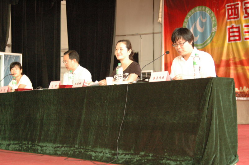 图1:柒瑞(右1)参加了“西安市大学生自主创业培训班”,作为优秀学员代表,进行《励志照亮人生 创业改变命运》的发言