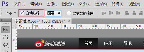 Photoshop的“移动工具“,在使用时勾选一个“自动选择”的复选框即可。此外可以设置是自动选择图层还是图层所在的分组。 拼合是在一个新建立的psd源文件上进行,命名应当与最后输出的图片命名相同。拼合时应当使用网格做整齐的排列(快捷键Ctrl + ‘ 切换网格显示)。整齐的拼图不仅方便多人编辑,而且css代码中的背景坐标定位会更加快捷(谁都喜欢有规律的数字)。