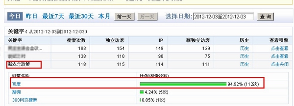 对于做百度优化的朋友来说,百度指数一直是一项不可忽视的数据信息。我们会借助百度指数来挖掘关键词、长尾关键词,分析站点的情况等等。可以说百度指数扮演中很重要的角色。 在我们不断的依赖于百度指数的同时,你是否发现百度指数的数据与真实的流量并不一定就是成正比的。有的时候百度指数高的词,所获得流量却相差悬殊。就比如笔者的站点,其中有一个百度指数为255的词,但是实际从这一个词所获得的流量确实只有112次,相差了一半以上。如下图所示。