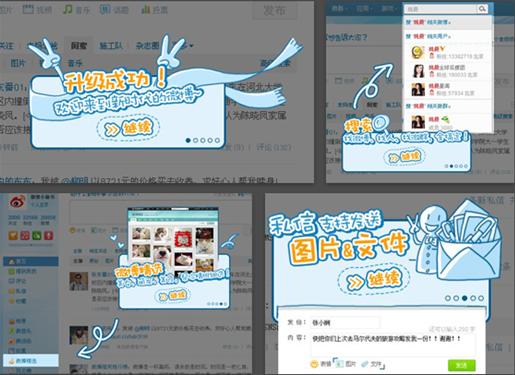 相信经常玩微博的朋友都很熟悉这个界面,对新浪微博的升级介绍,涂鸦的形式看起来很“卡哇伊”,小孩气充足,当不得不承认,它的介绍非常生动活泼,给人亲近感非常强,用户在不知不觉中就已经对这些行为操作了如指掌。 艺术可以为所欲网,但是设计却需要以用户为主,每个艺术和设计都离不开情感,在网站设计中,情感设计能更轻易走进用户的内心,引发心灵的共鸣,从而羁绊用户的眼球。 观点仅 编辑所有,谢谢关注! (责任编辑:admin) |