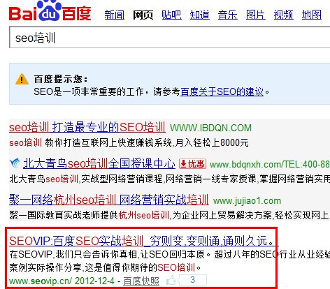 简单朴实的设置,title=“SEOVIP_百度SEO实战培训,让SEO回归真相”,百度抓取的为“SEOVIP:百度SEO实战培训_穷则变,变则通,通则久远。”,简单的对比一下,没有我们熟悉的堆积关键字,没有我们熟悉的超过多少字的标题,有的仅仅是我们看到的三点“SEOVIP,百度SEO实战培训,让SEO回归真相”,一段顺畅的标题从另一个角度中提到了我们不用关注标题中有多少关键字的存在,而应该关键字的是SEO的自然融合,带出了百度seo,seo培训,seo实战,等等的关键字。 而在描述部分,更加的简单,那就是解释标题的作用,不看其他,就因了这个网站单页面的简洁,也是会我们的网站的小方式提供了解释和技巧,简单而不简约永远是seo最为受用的知识。 最后呢,一张页面打天下,你可以看到的是什么 回归整站页面,仅仅是单页面,看了一下这个网站的整体结构,也有我们更多的可以思考的地方,无论这样的方式是否对于用户有意义,但是对于每一个seo来说,都是可以借鉴一下的,如图