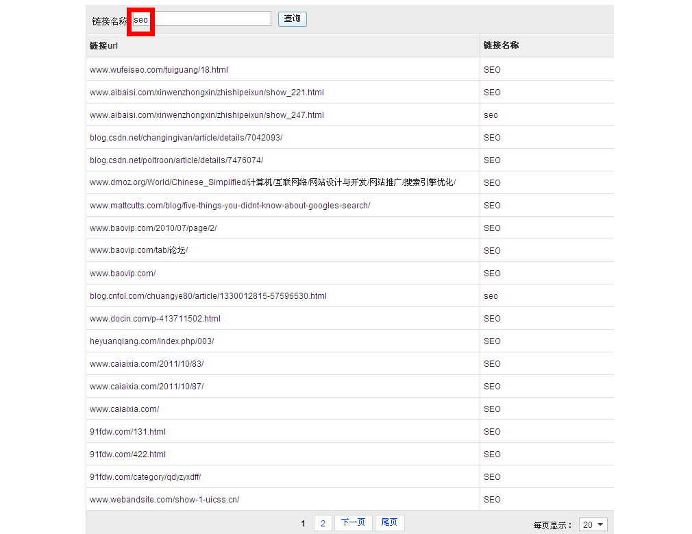 这个搜索功能非常的好,比如如果了解竞争对手的外链大概范围和特定关键词的外链来源。比如seozac的博客核心关键词seo,这里搜索seo之后外链来源如图所示