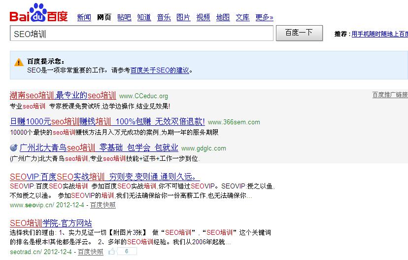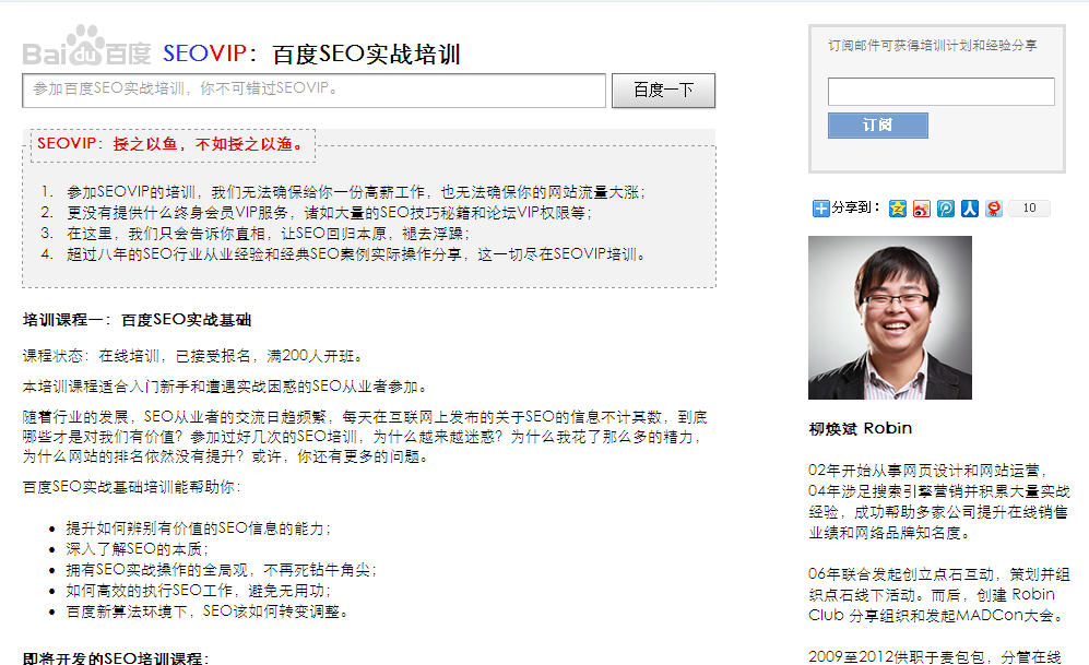 昨天最让我们这个做SEO震撼的一件是你们知道是什么吗?那就是robin(柳焕斌)优化的一个单页面网站居然在上午冲到了百度“SEO培训”第四的位置,到了晚上居然冲到了第一位(图1),整个QQ群里面都炸开了锅。