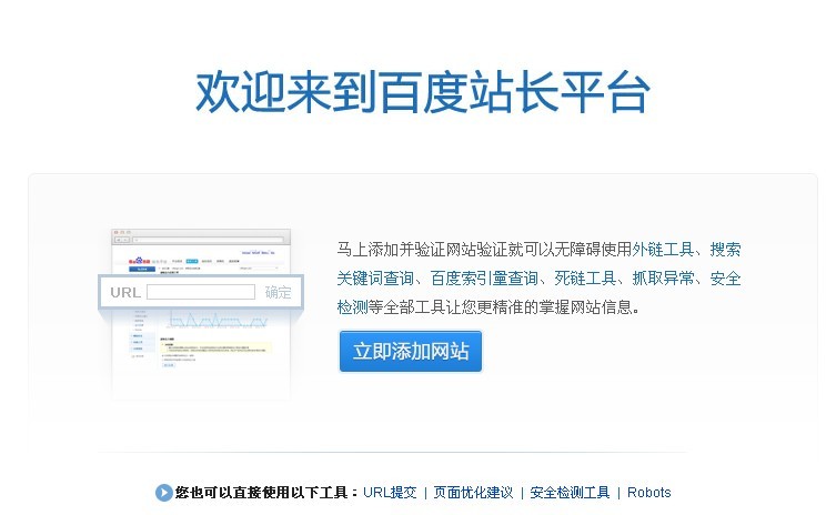 也算是免费给咱大百度做广告了,看到那么多人连百度站长工具是何许工具都不清楚,还真是有点悲哀,倒不是为百度悲哀,而是为那些个seoer和个人站长们悲哀,作为百度官方提供的站长工具,数据从百度的数据库中提取,虽然功能简陋而且有时候延时性总是让人蛋疼不已,但是不得不说,这应该算是现在流行的站长工具里面最准确的一种了。 好了,闲话休提,今天奈何来给大家讲讲这个百度站长工具吧,首先你需要一个百度账号,如果没有的话,就去注册吧,直接给网址: https://passport.baidu.com/v2/?reg®Type=1&tpl=mn&u=http%3A%2F%2F%2F,注册好了之后,直接到站长工具页面:,为了和大家同步,奈何还重新注册了个百度号o(╯□╰)o。进了站长工具之后如下图: