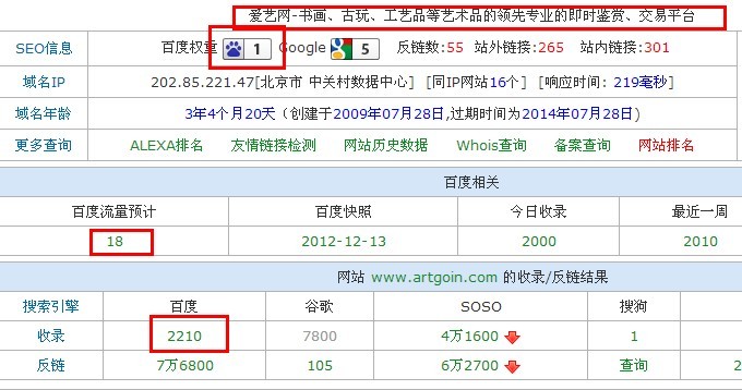 1、title 该站首页标题为“爱艺网-书画、古玩、工艺品等艺术品的领先专业的即时鉴赏、交易平台”,这样写有利有弊,利的方面是网站标题为营销型,重点是打造品牌;弊的方面是关键词选取太泛泛,都是一些行业词,如书画、古玩、工艺品等词,关键词选择不够精准。 该站的频道页,部分是跳转到顶级域名,部分是二级域名。这都关系不大,重要的是该站频道页title标题写得太差。由下面截图可以看出,部分频道页的标题甚至与首页标题一模一样。这是很多中小企业站的通病,而作为接近行业站的爱艺网表现得就有点差。