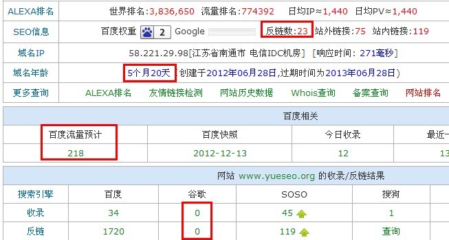 因为做的是“seo培训”这种竞争度比较大的词,百度外链基本可以忽略不计。单页网站,重点是网页的布局与强悍的外链。笔者很诧异的发现该站没有被谷歌收录,结合到欧阳淳老师至少有四个“seo培训”网站,问题就迎刃而解了。 1、域龄。5个多月的站,基本上过了百度的审核期,可以着力有策略的优化。 2、友链与反链。 笔者查询该站的友链,发现有大量单向导出友链,而且都是指向新浪、搜狐、和讯、凤凰、阿里巴巴得知名站点。笔者最初认为是该站想提高网页的枢纽值,但是提高该站的枢纽值可以大量单链指向A5、chinaz与搜外啊。待笔者打开这些页面外,发现都是一些介绍欧阳淳老师seo培训的文章。这样,既能有限的为网页的枢纽值做贡献,又能提升新手对该站的信任,一举多得。