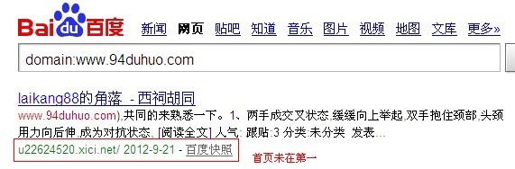 这让作为SEO新手的我很是奇怪,这收录一会100一会243的,到底是怎么回事呢?后来我在群里进行了交流,得知,这样的现象可以判断为,百度对你的站持怀疑态度了,是降权之前的表现。网站降权,这让作为SEO新手的我很是头疼,以前没遇过这种情况啊,查了查资料,仔细的对网站进行了分析,发现,可能是同一服务器上的别的网站被K所致,也有可能是这两天外链发的过多,优化过度了,经过仔细分析,发现文章的友情链接也有好多是无效的链接了,怪自己粗心,这两天没有仔细的检查网站的情况,导致了这一现象的发生。 今天来查看网站的时候,发现对网站进行domain操作的时候,网站的首页确实不在第一页了,判定为网站确实被降权了。具体情况如下: