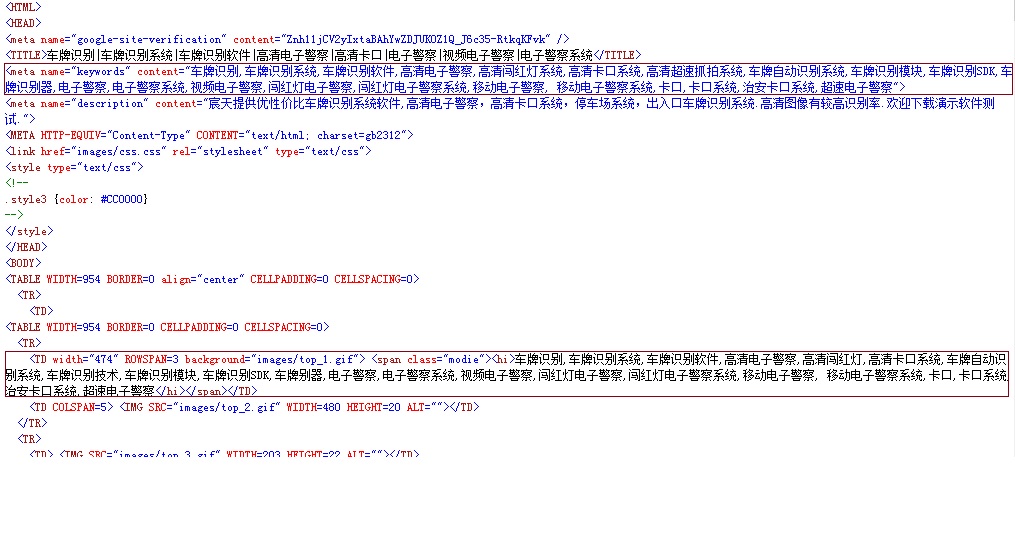 我们再来看下它的源码,明显的网站关键词设置和首行网页内容都是同样的关键词堆砌出来的。