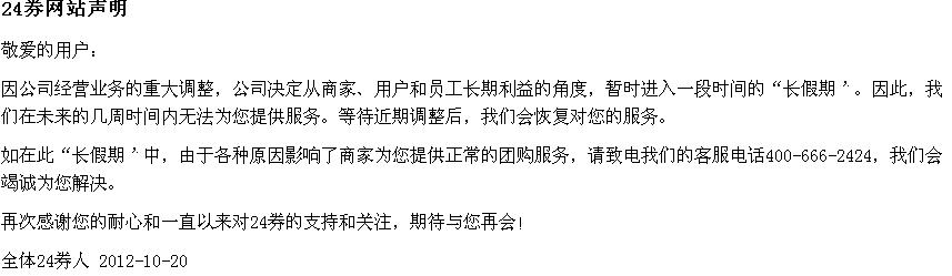 24券创始人杜一楠是个十足的高材生,24券也是中国最早、规模最大的本地服务团购平台之一,曾经的24券凭借“分享每天的幸福”和“体验至上”的宗旨被广大消费者评为“最具幸福感的团购网站”,可如今当我们打开24券的官网,却只能看到如上图所示的“24券网站声明”,24券没有明确表示停止服务,而是说“因业务调整,进入长假期”,或许24券还在期待“重生”,但是我们都知道,现在的24券已经实实在在的关闭了,或许某年某月24券能够重新开业,但是这种长假期还能够留下多少客户呢? (3)维棉网