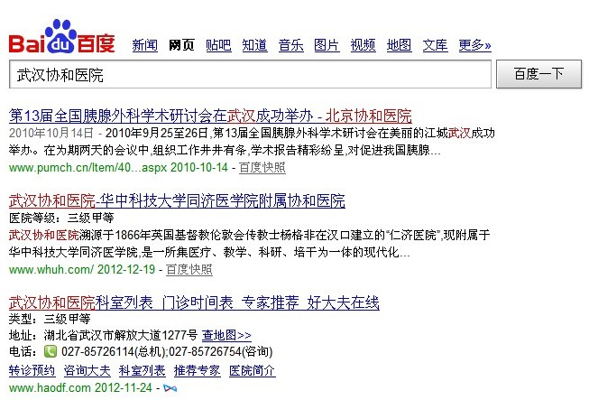 百度“肿瘤医院”搜索结果 余斗搜索了大部分“病种+医院”这样的关键词,不过除了余斗发现的这两个关键词,首页还没发现其他的类似的公立医院。看来,搜索结果出现公立医院级别等相关的信息不是普遍现象,或者说,公立医院没有参与这些关键词的竞争!那么,既然有人提出这样的问题,从事医疗SEO优化工作的余斗觉得有必要分析下,这样的搜索结果展示对私立医疗行业的影响。 医疗行业一直很赚钱,不论私立还是公立,这是公开的秘密,关注SEO的都知道,公立医院是没有优化的,至少余斗了解的是没有的!大部分医疗SEO都是为私立医疗医院服务的,很明确,公立医院之所以那么强大,是因为在老百姓中的传播高,口碑好。他们不需要从搜索引擎导入用户了!拿余斗所在的武汉的武汉协和医院来说,每天都是门庭若市,协和医院周围也是最繁华的地段,病人挂号都要排很长的队,这是私立医院所不能及的。但是,公立医院也有自己的缺点,床位紧急、挂号难是众所周知的,而且公立医院收费项目繁杂,如果不是很重要的大病,一般的老百姓是不会选择去公立医院治疗,私立医院就便利了病人的选择。这也是为什么私立医院火热的原因之一! 私立医院要想达到知名度高,多做广告宣传是其一,还有就是要SEO,病人不想去公立大医院,在不知道还有什么医院的情况下,在互联网上就只能靠搜索引擎这个工具来找自己的信息了,那么SEO对私立医院的作用就凸显出来。这也是为什么公立医院不做SEO,私立医院拼命做SEO的根本原因! 说了如此多的废话,我们言归正传,百度早在10月就对医疗行业信息做出调整,增加备案信息,被视为是对私立医院网站的一次小地震,很多私立医院纷纷开始用国内空间备案,然而此次百度对公立医院的搜索信息展示进行丰富,余斗认为对私立医院影响不大。仔细研究关键词搜索结果,你会发现,除了专业医疗平台,几乎前几页都没出现公立医院信息,可见,从搜索引擎这个角度来看,公立医院是没有与私立医院竞争的,而百度对公立医院搜索结果的增加自然就没有竞争了,而且余斗发现一个现象,在搜索“武汉协和医院”时结果是这样的: