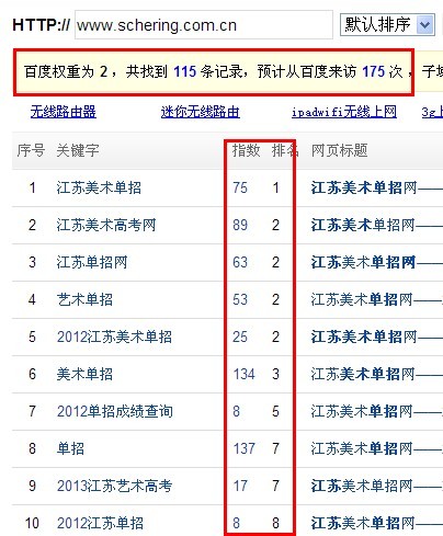 江苏美术单招网的定位是,“艺术单招信息发布平台”,主打是信息发布,而第二个网站“湖南单招考试报名”,主打是考试报名。诚然,在国内做平台很赚钱,如淘宝网,猪八戒威客网等网站都是做平台。但是,做平台需要做到行业前三,其次,做平台要精耕细作,如一些地方论坛,如厦门小鱼网,盈利能力就不逊。 在网站定位上,第一个网站就有些不足。而湖南单招考试报名网,只要学生通过网站报名,就开启了网站的赚钱机器。当然,这其中还有些猫腻,待笔者慢慢述说。 其次,查看两个网站,第一个网站频道页居然没“报名频道”,这可是教育招生类网站赚钱的核心,其次,江苏单招网没有在线QQ客户,只在网站内页右上角留有咨询电话,网站互动性做得很差。试想一下,又有几个浏览者会点击入内页查找联系方式呢? 二、不会利用网站流量来盈利 下图,是江苏单招网的流量截图。
