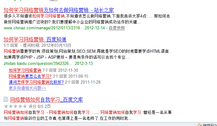 看吧,当我们搜索这个长尾词的时候,大家都能看得到一些文章的标题是直接用长尾词来布局的,但是这些词不适合布局到我们网站的标题中,所以最好能布局到我们文章的标题中,在文章中多出现几次这个关键词,这样我们的文章的相关性就提高了很多排名也会很靠前; 类目长尾词:网络营销方案 这一类的关键词就不适合布局到文章中了,如果我们的网站空间足够的大,足够用的话,建议能够开发出一个相应的栏目来供我们布局长尾关键词;我们可以开发一个大的类目,在大的类目中去布局我们选择的长尾词;