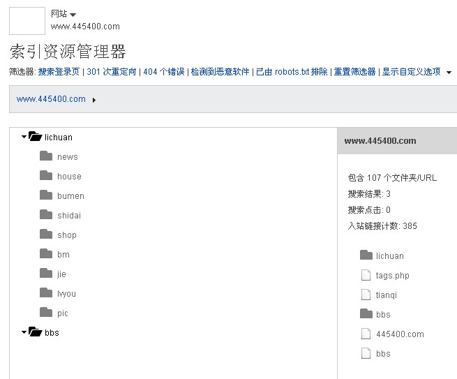 索引资源管理器:可以检测出蜘蛛抓取网址遇到的问题。