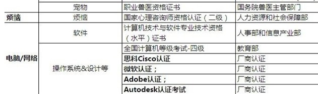 以上证书均由国家人事部,教育部,人力资源和社会保障部等国内部机构颁发。 具体详情去百度查看: