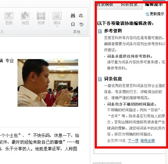 第一步,我们可以让自己的亲朋好友去提问一个与自己网站相关的问题,提问好之后静等1-3天。 第二步,等时间差不多的时候,在中午进行回答问题,但不要带链接。 第三步,不采纳让朋友进行追问,在追问的过程中,你可以再次进行回答,并且带进去你网站的网址,这样通常都是可以通过的。 小提示:带链接最好不要带网站主页以及栏目页面的链接,最佳情况是带内容页的链接,最容易通过。另外小编建议各位一周做2-4个即可,切勿做太多以免被百度管理员察觉做删除处理。 (四)百度百科外链的做法。 百度百科权重高,这点大家都知道,那么在百度百科上做外链对自己网站权重提升的帮助大家可想而知。下面我来交大家百度百科外链的一些做法。 第一步,搜索到我们想要添加百科的词条并且点击进去。 第二步,点击页面上面的编辑词条,进入编辑页面。 第三步,看网页的右侧是否存在编辑提示,如下图。